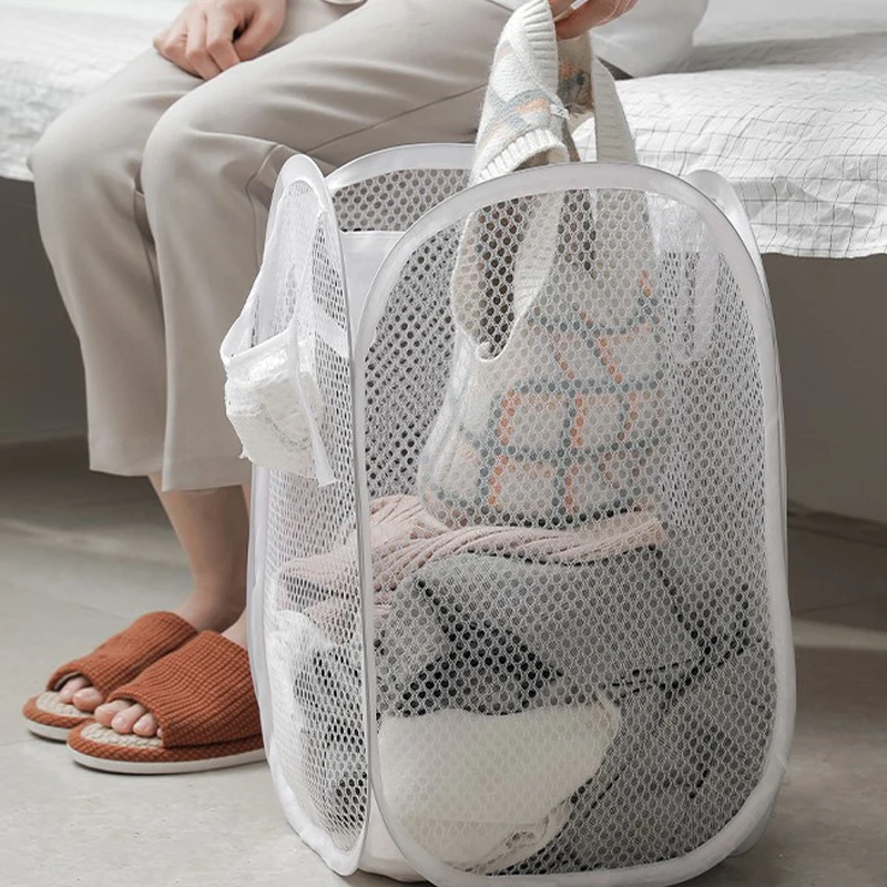1PC Foldable Mesh Laundry Basket Toy Organizer Bag Collapsible Clothes Baskets for Dorm, Bathroom & Travel 2025new