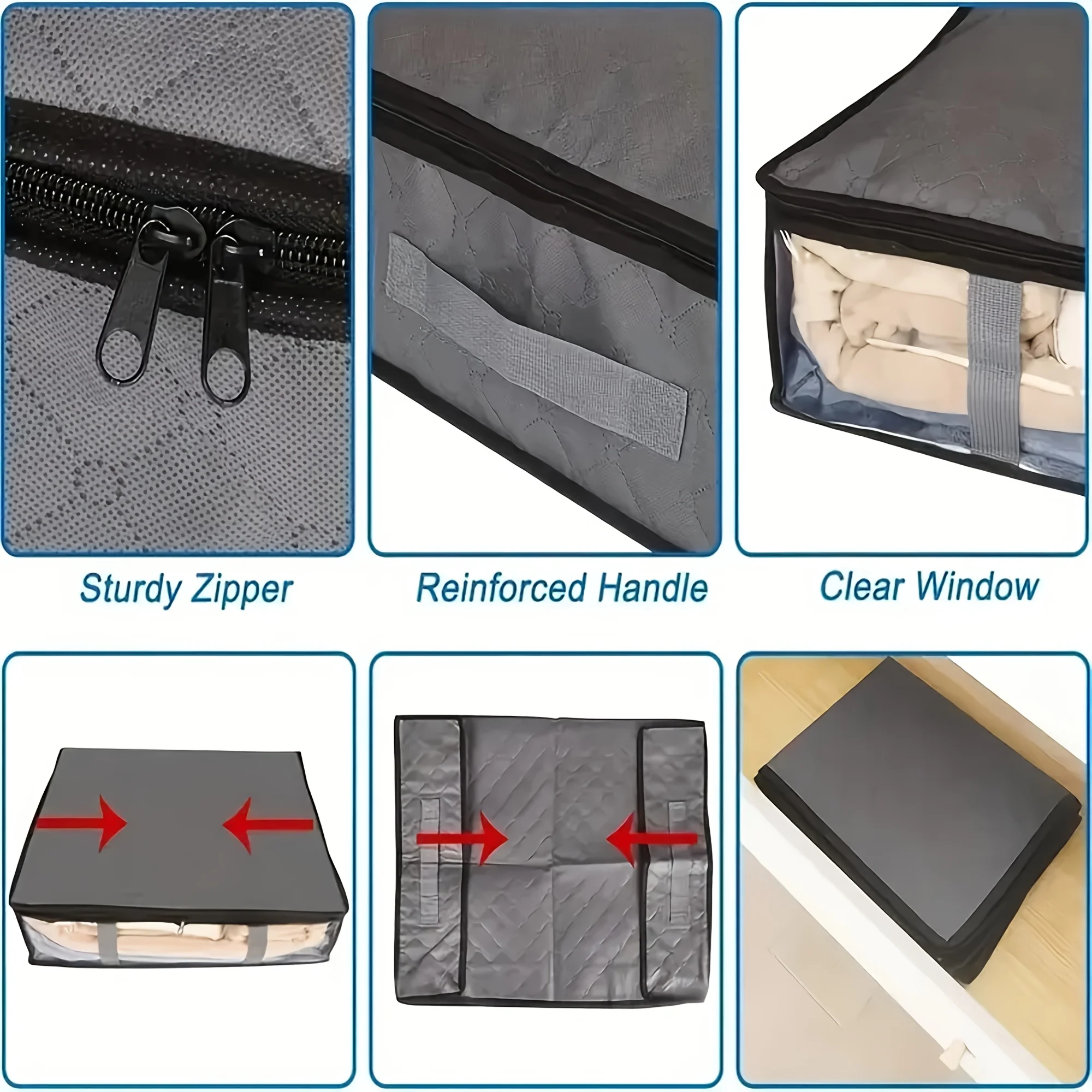 2pcs Large Under Bed Storage Bags Non-woven Clothes Organizer Clear Window Reinforced Handles for Comforters Blankets Bedding
