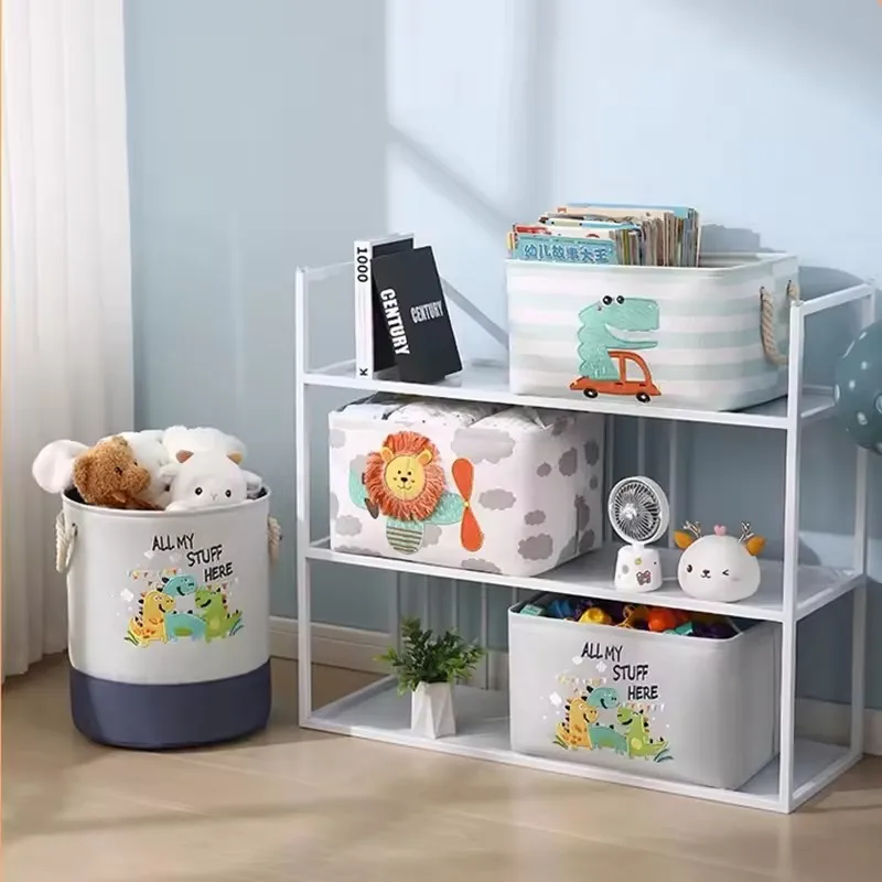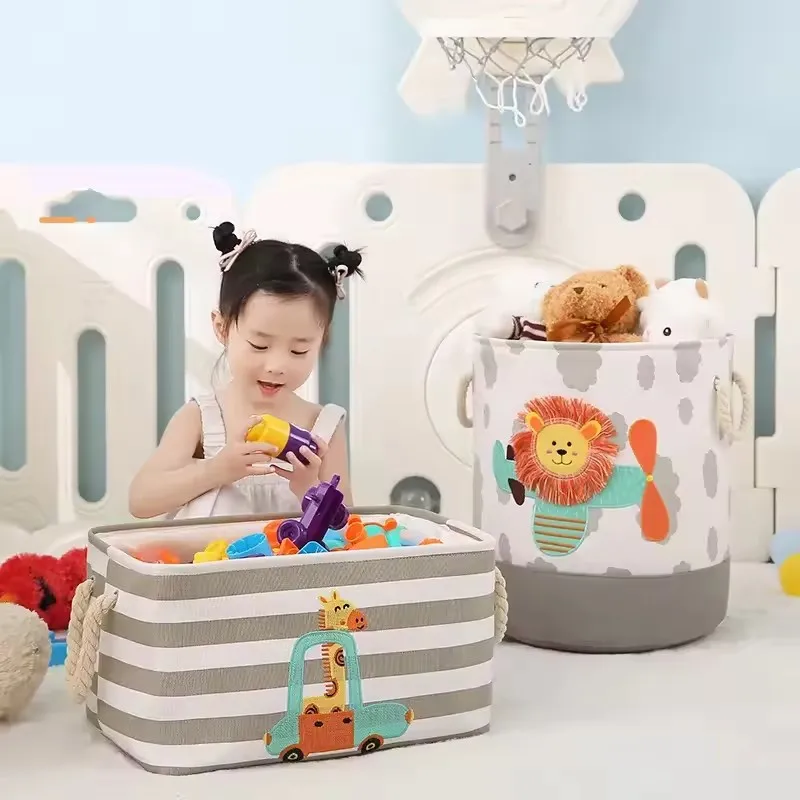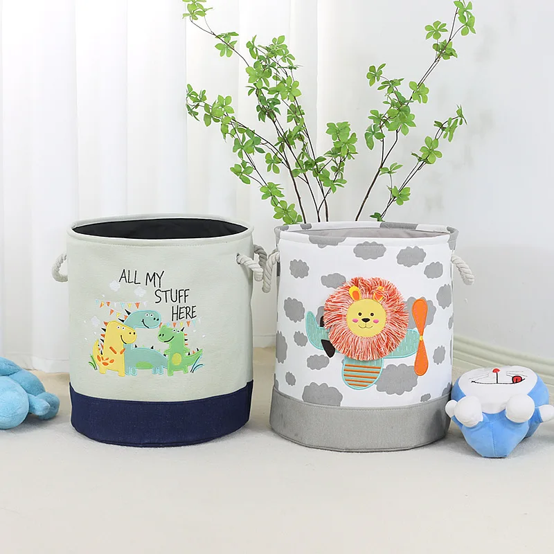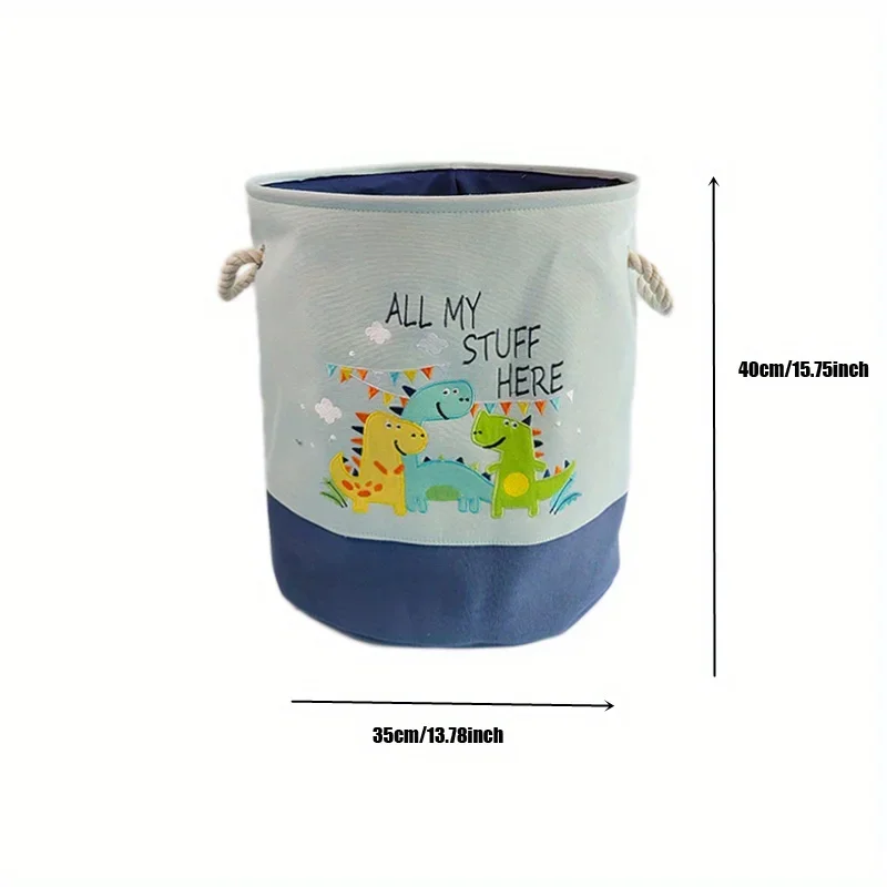 Cartoon Toy Storage Basket & Foldable Canvas Laundry Hamper, Collapsible Clothes Organizer Bin with Handles for Kids Room