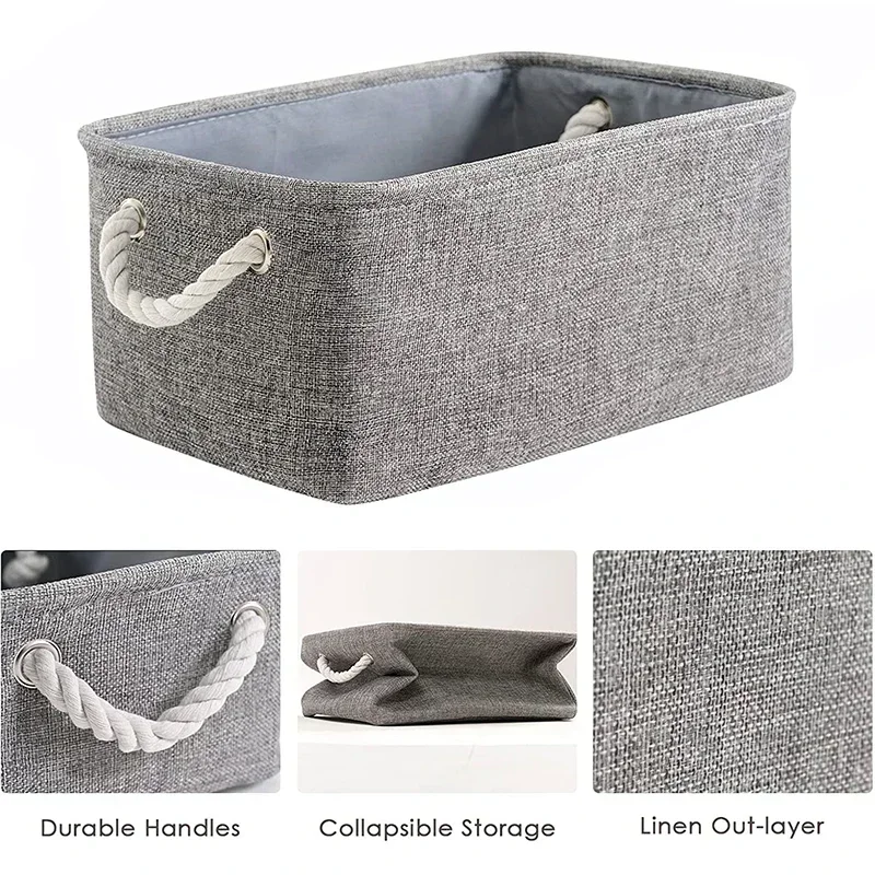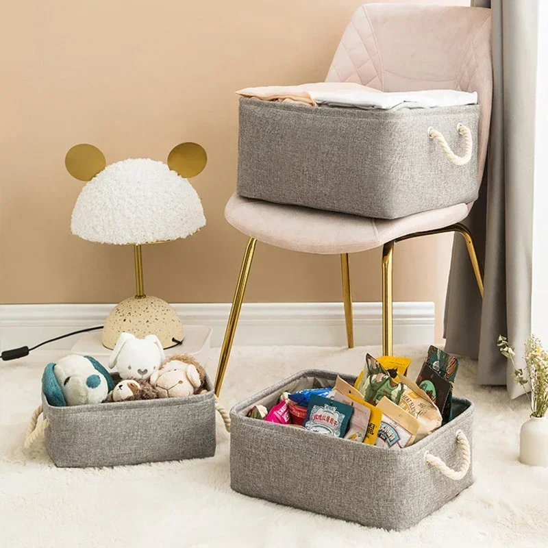 Large-capacity Sundries Storage Basket Collapsible Linen Fabric Storage Box for Living Room Bedroom Dorm Foldable Storage basket